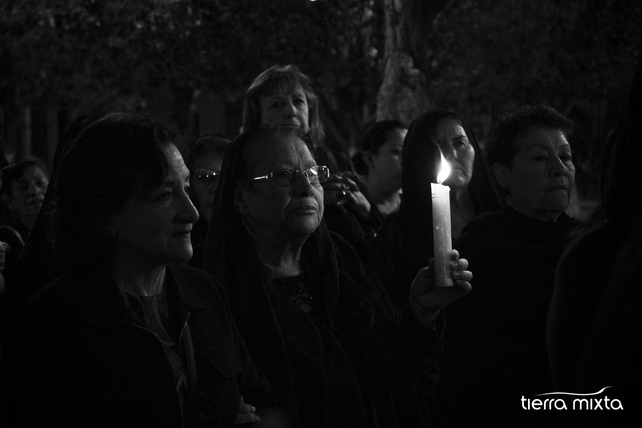 En punto de las 20:00, nuevamente se dan cita los fieles en el templo de la ciudad, a donde llegan con vestimenta de luto, a acompañar en el duelo a la Virgen María, quien sufre la muerte de Jesús en la cruz. Se celebra el rosario a la Virgen Dolorosa, advocación mariana que recuerda el sufrimiento que enfrentó María al ver a su hijo padecer. Acompañado por un coro femenino sin instrumentaciones que con su canto conducen hacia el profundo significado del momento. Al término las oraciones, un grupo de mujeres cargan con la imagen de María, por el templo, y en procesión recorren el atrio, de regreso las personas se acercan a venerar.