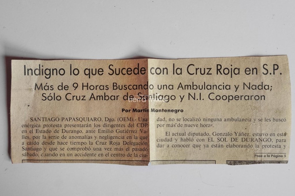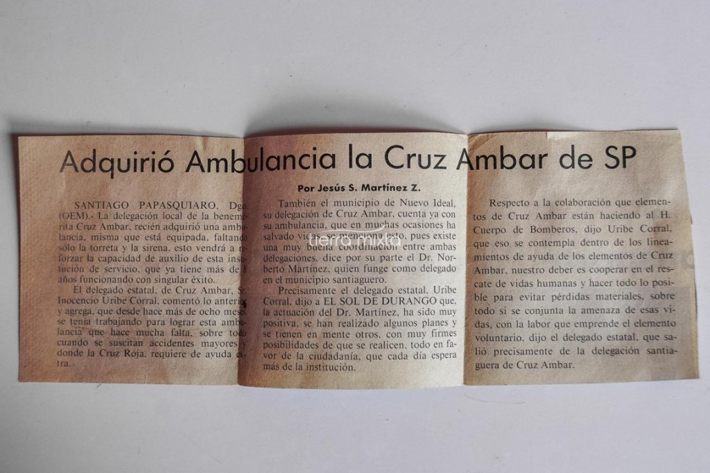 A mediados de la década de los 80’s llega la Cruz Ámbar, a través de Inocencio Uribe quien estableció comunicación con las oficinas centrales en Ciudad de México y fundaría en el municipio una unidad de primeros auxilios que aumentaba la capacidad de atención a los habitantes de la región noroeste de Durango.