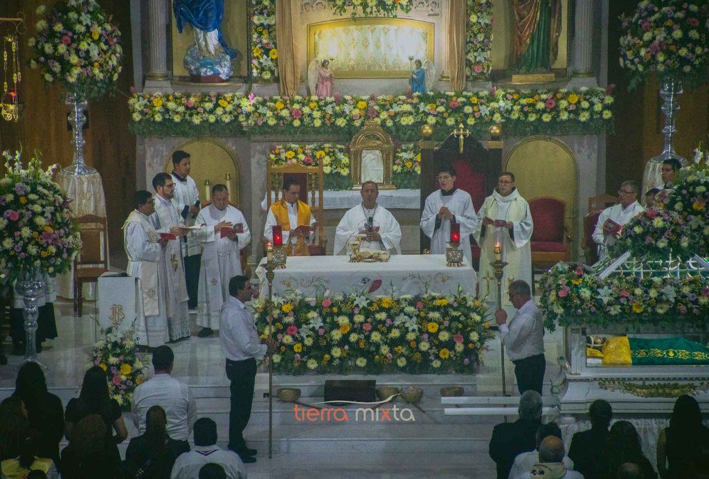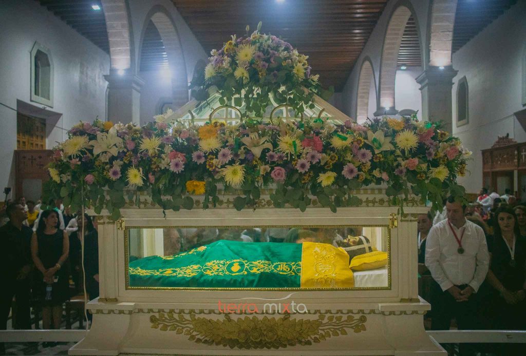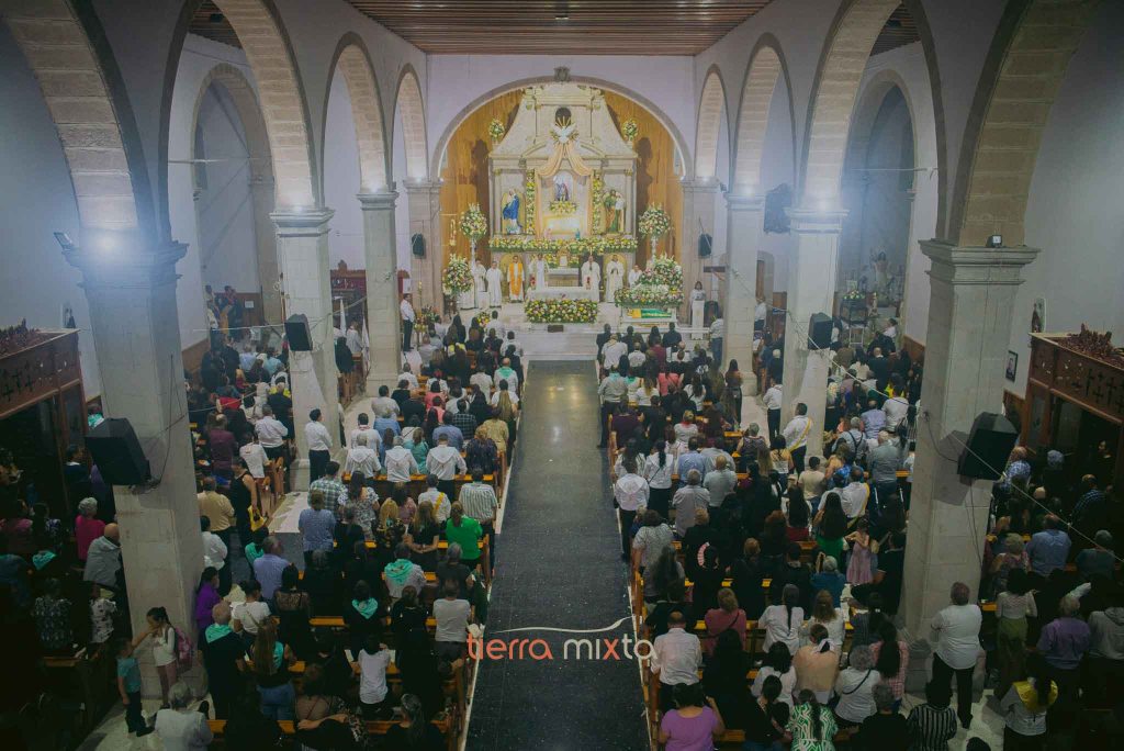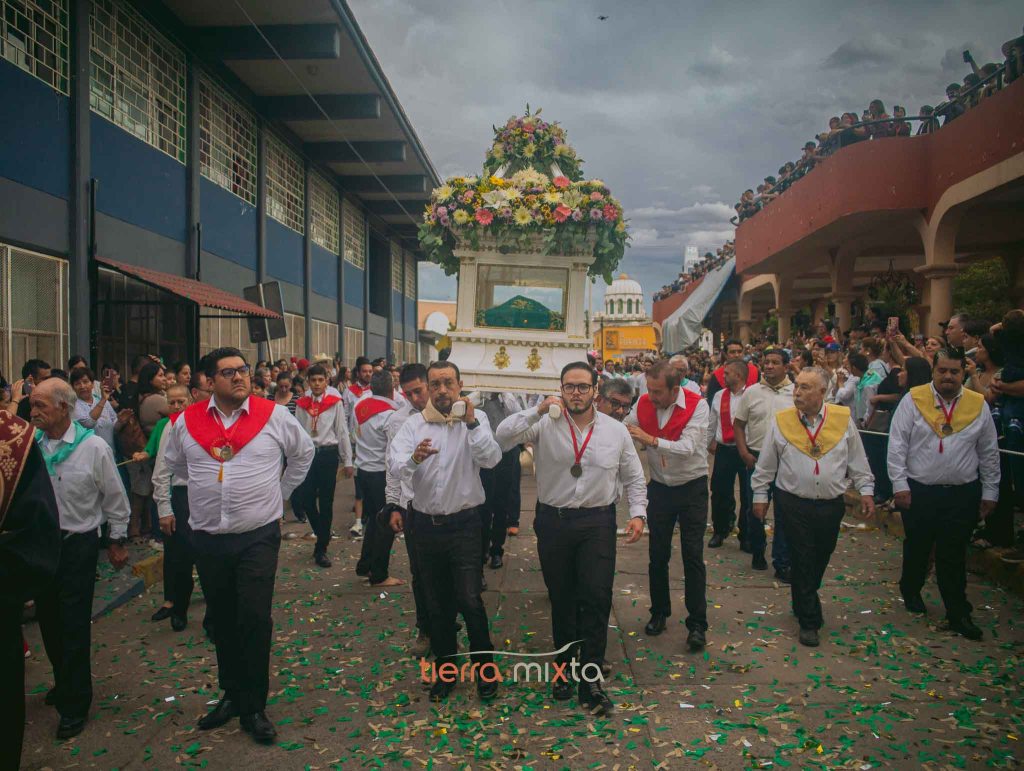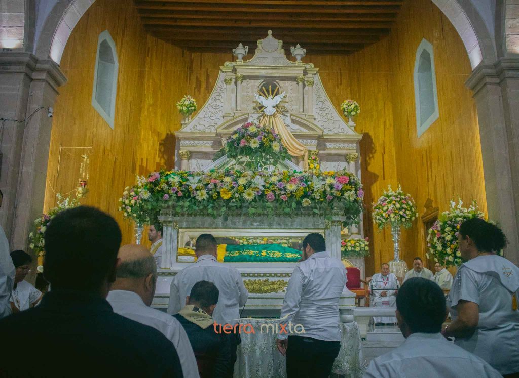 Ya dentro, hombres y mujeres, entraban de rodillas para acercarse a la imagen y venerarla. Este acto se presentó por casi dos horas, en las que la banda no dejó de tocar. Posteriormente se celebró la misa, en la que se contó con sacerdotes de toda la región.