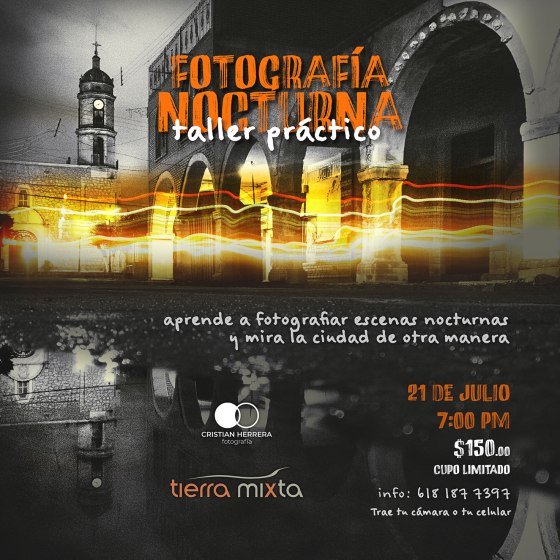 Este 21 de Julio en punto de las 7:00 p. m., tendremos el primer taller de Fotografía nocturna en Santiago Papasquiaro. Aprende a fotografiar escenas nocturnas y mirar la ciudad de otra manera.